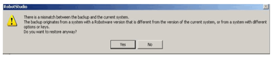 注意:如果備份中的系統不是源自您要恢復的控制器,您將收到以下提示不匹配的信息。