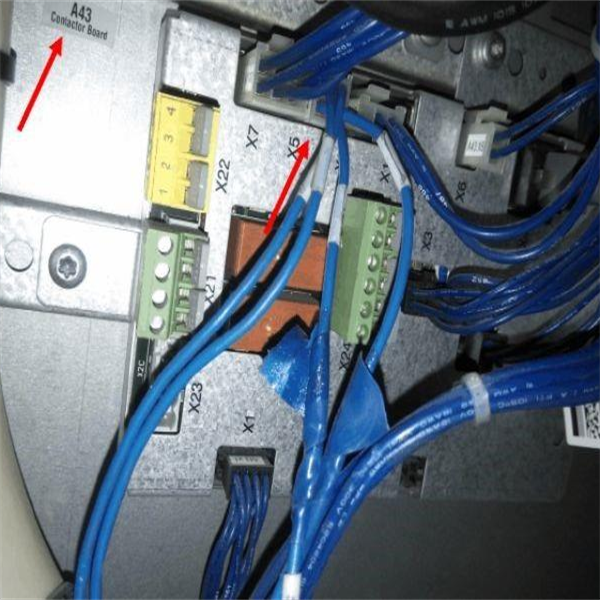 具體操作方式:在控制柜左下角找到A43板,找到板子上5插頭,上邊有4根線,其中線號(hào)為439和440的兩根線就是電機(jī)過(guò)熱報(bào)警信號(hào)線將兩根線從中間斷開(kāi),把板子這邊的兩根線短接即可。(如下圖)